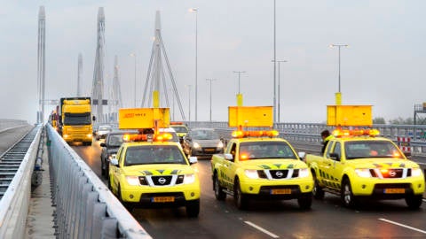 480x270-6.jpgWeginspecteurs Rijkswaterstaat are often first on the scene. They put the place on the accident, help and wait until the emergency services arrive. The road inspectors to use than an orange flashing light, but it is less effective than blue light.
