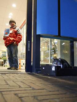 On the other side of the sliding Lulu acquiesces in her fate. From her cardboard box she meows at her old buddy Nico, the seller of the Straatnieuws who can stand inside. The patrons and staff of the store to find it, like Nico, unfortunate and sad that Lulu has been banned for years. They have nothing good to say about the hard decision.