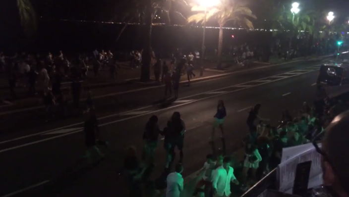Some thought shots had been heard. It is not clear if it really comes to shots, or that it was fireworks. The French currently celebrating Quatorze JUILLIET, the annual festival on July 14. Pictures on Twitter show that people run away crying and screaming.