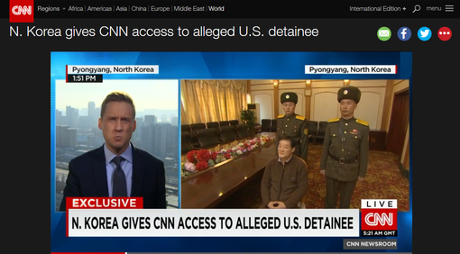 Noord-Korea presenteerde de man in een zaaltje aan CNN. Te zien is dat hij onder begeleiding van twee soldaten naar een camerateam van CNN wordt gebracht. Hij vertelt vervolgens dat hij in Noord-Korea een soldaat geld heeft gegeven om voor hem informatie over het leger te verzamelen. Die informatie verstopte hij in zijn auto en gaf hij naar eigen zeggen door aan de regering van Zuid-Korea.