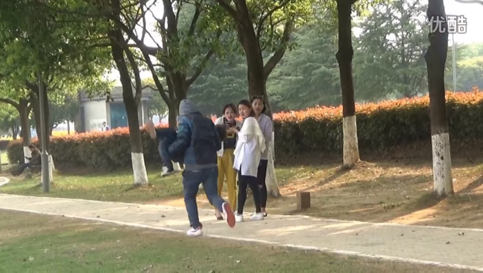 Alhoewel het jongetje heftig tegenstribbelt en hard om hulp gilt, valt het op dat niemand echt iets doet. Omstanders schrikken van het tafereel, maar niemand maakt aanstalten om de man tegen te houden of de politie te bellen. Sommige getuigen moeten zelfs lachen en lopen vervolgens door alsof er niets aan de hand is.