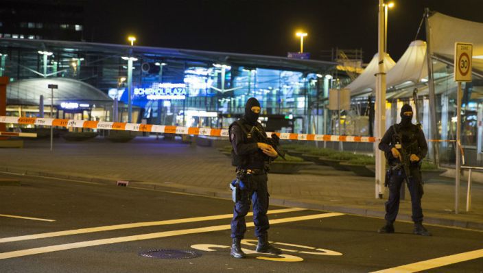 Voor het Schiphol Plaza is één persoon aangehouden. Het gebied wordt onderzocht en is afgezet. Volgens getuigen lopen er op dit moment allemaal mensen met bivakmutsen op de luchthaven, zo meldt AT5.