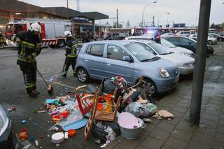 Het begon allemaal met een plastiek plantje dat uit het raam op straat werd gegooid. Niet veel later volgden stoelen, vazen en verscheidene stukken kinderspeelgoed. Toen de man ook met keukenmessen begon te gooien, werd de situatie zeer ernstig. Er leek geen einde aan te komen. "Wij zagen het allemaal vanuit ons raam op de benedenverdieping gebeuren", vertellen enkele getuigen. "De man beschadigde verscheidene wagens en er lagen overal stukken glas."