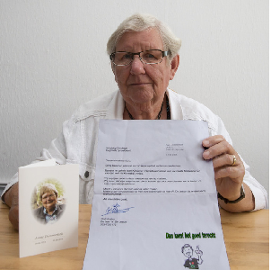 ,,De brief kwam binnen een week nadat de rouwadvertentie in de krant stond. Je bent als familie in diepe rouw. Hoe respectloos kun je zijn? Het laatste waar je op zit te wachten is een brief, gestuurd uit winstbejag. Dit klinkt wel erg naar: de één zijn dood, is de ander zijn brood."
