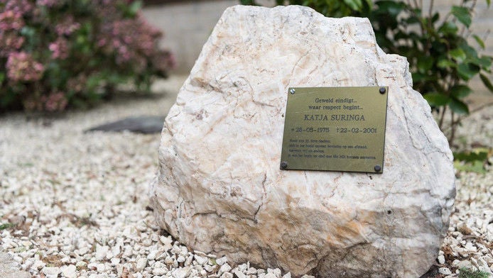 Vijftien jaar na de moord op hun dochter Katja Suringa mochten haar ouders Hans en Beb een gedenkboom en -steen plaatsen bij de vijver bij Emiclaer. Sinds vorige week, negen maanden na de plaatsing, ligt de steen in de voortuin van hun woning aan het Zocherpad in de wijk Zielhorst. Op last van de gemeente hebben ze de steen weggehaald.