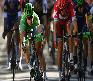 Peter Sagan heeft met een banddikte de zestiende etappe van de Tour de France gewonnen. Hij duwde zijn wiel net voor Alexander Kristoff over de finishlijn, die in Bern was getrokken.